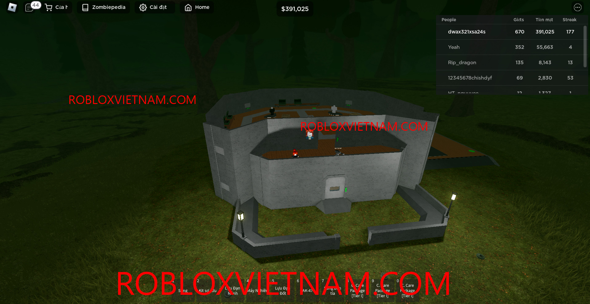 Nick pro game Undead Defense Tycoon ---- Nick pro đã kill được hơn 700 con zombie ,đã kill được con zombie chúa và có chuỗi gần 200 con zombie -- Nick có nhiều tiền còn dư hơn 450k tiền có 2 tầng nhiều đồ và nhiều vũ khí có xe và súng bắn tự động nick có 4 loại giáp và top 1 sever -- Nick siêu pro đang được giảm giá hãy mua ngay: